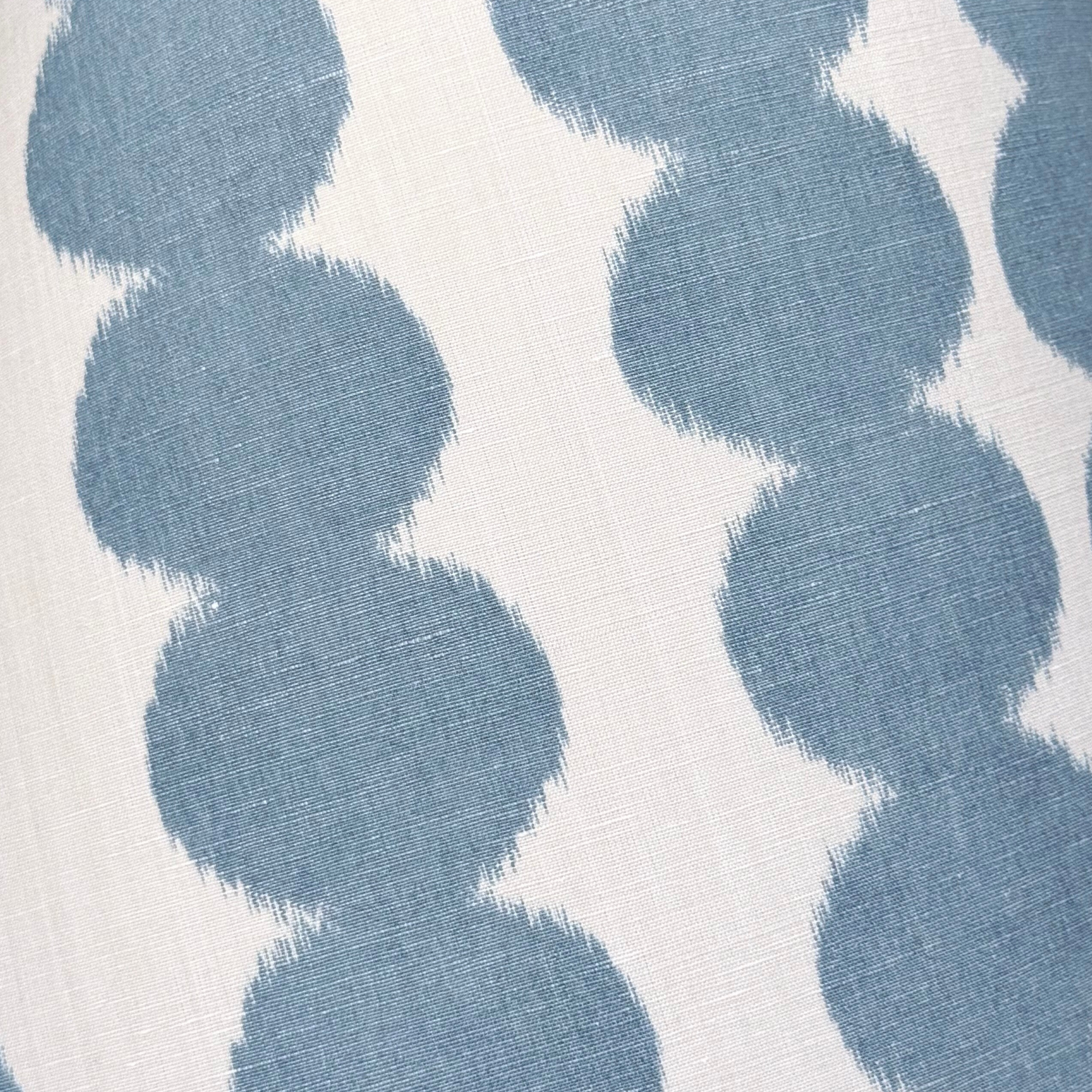 This handcrafted lampshade showcases Schumacher's iconic "Full Circle" fabric in a serene sky blue. Known for its luxurious textiles, Schumacher blends graphic artistry with premium materials, creating an eye-catching design that adds playful sophistication to any room.