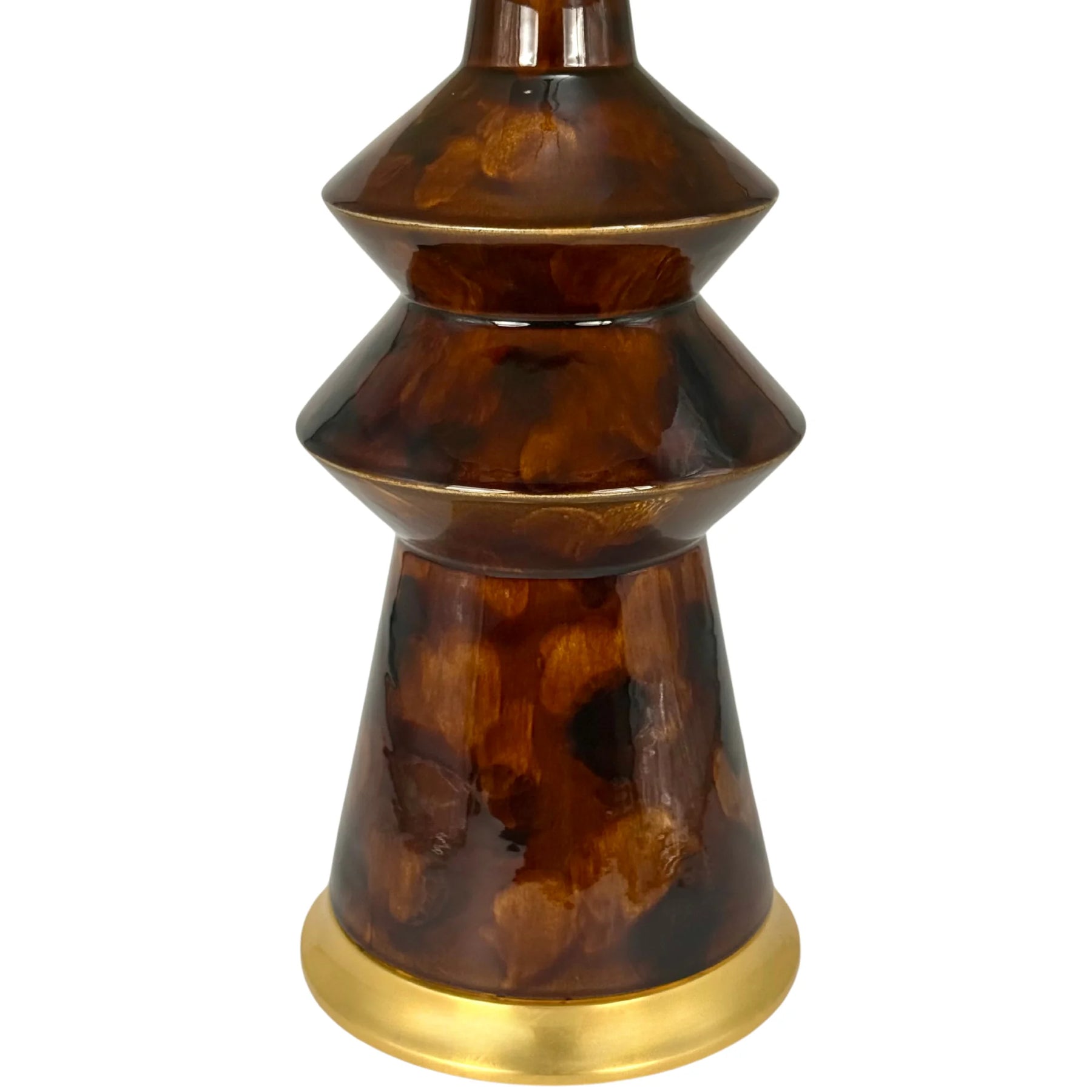 The Malibu table lamp by Hwang Bishop features a bold, angular silhouette with a rich tortoise glaze, adding depth and character to any space. This warm, dimensional glaze features subtle variations that enhance the handcrafted nature of the piece.