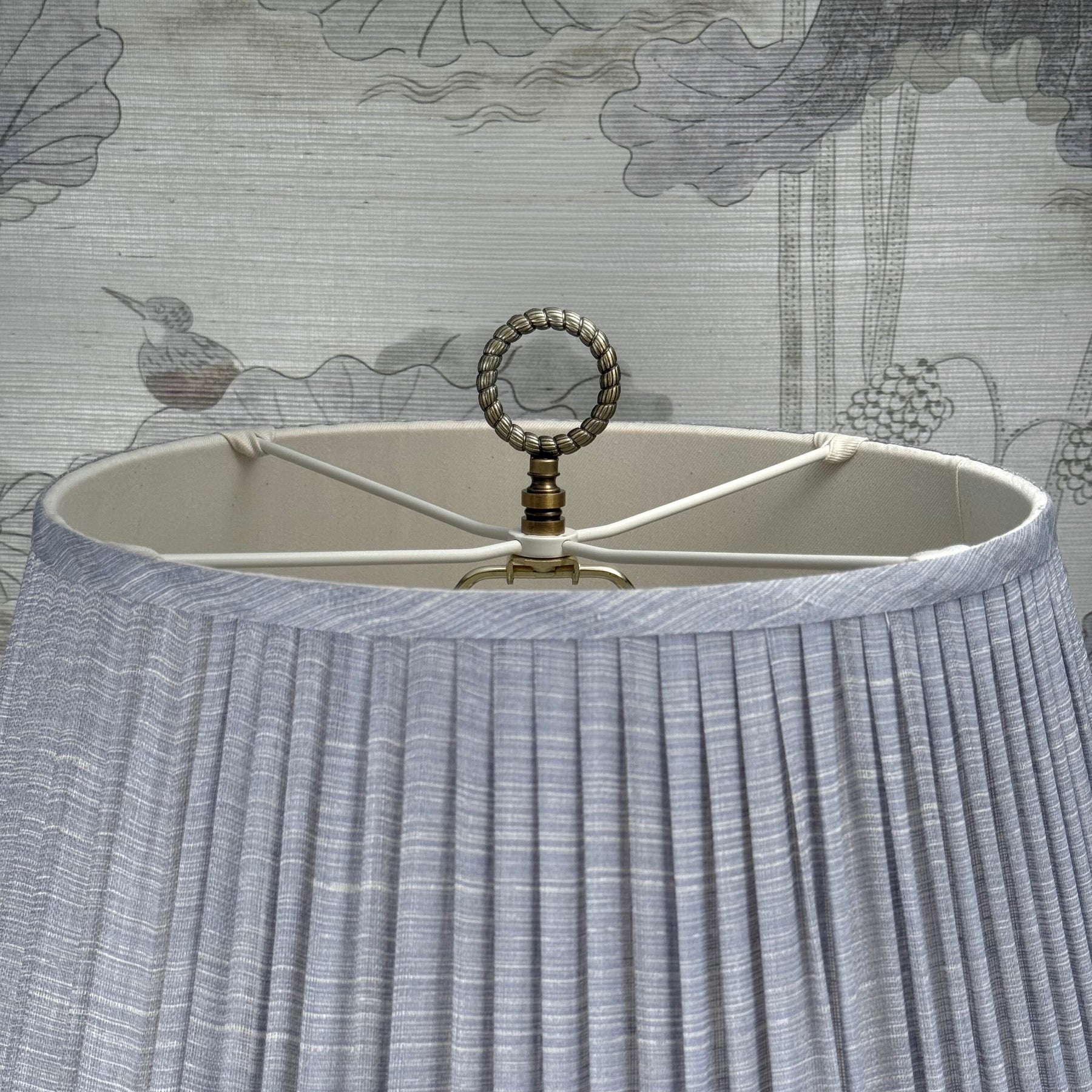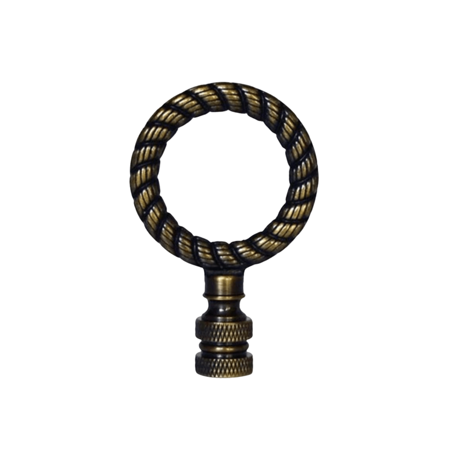 This antique brass ring finial features a twisted design that adds a classic, sculptural accent to any lamp.