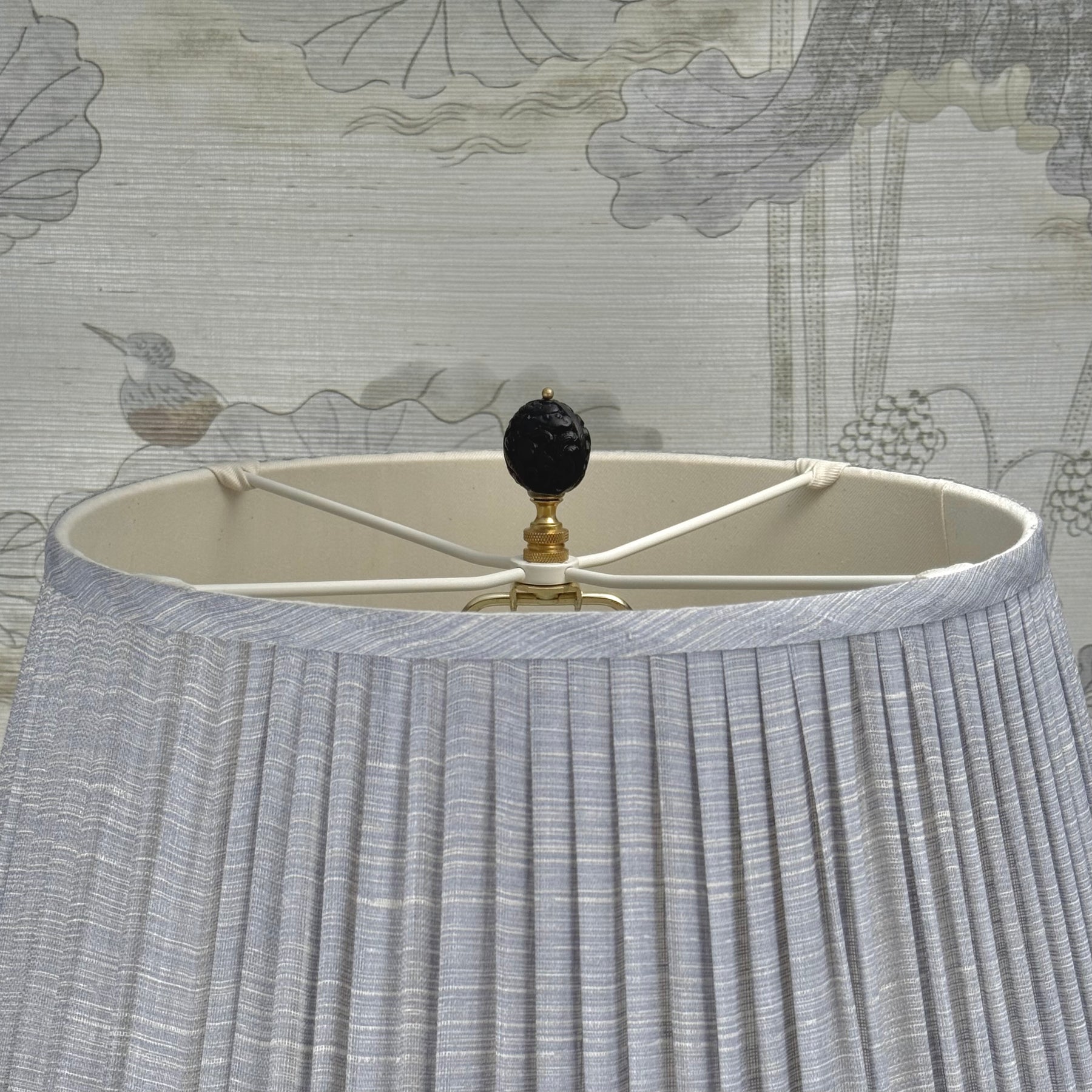 Crafted from black cinnabar resin and set on a brass base, this finial features an intricate dragon motif that adds a striking, sculptural detail to any lamp.