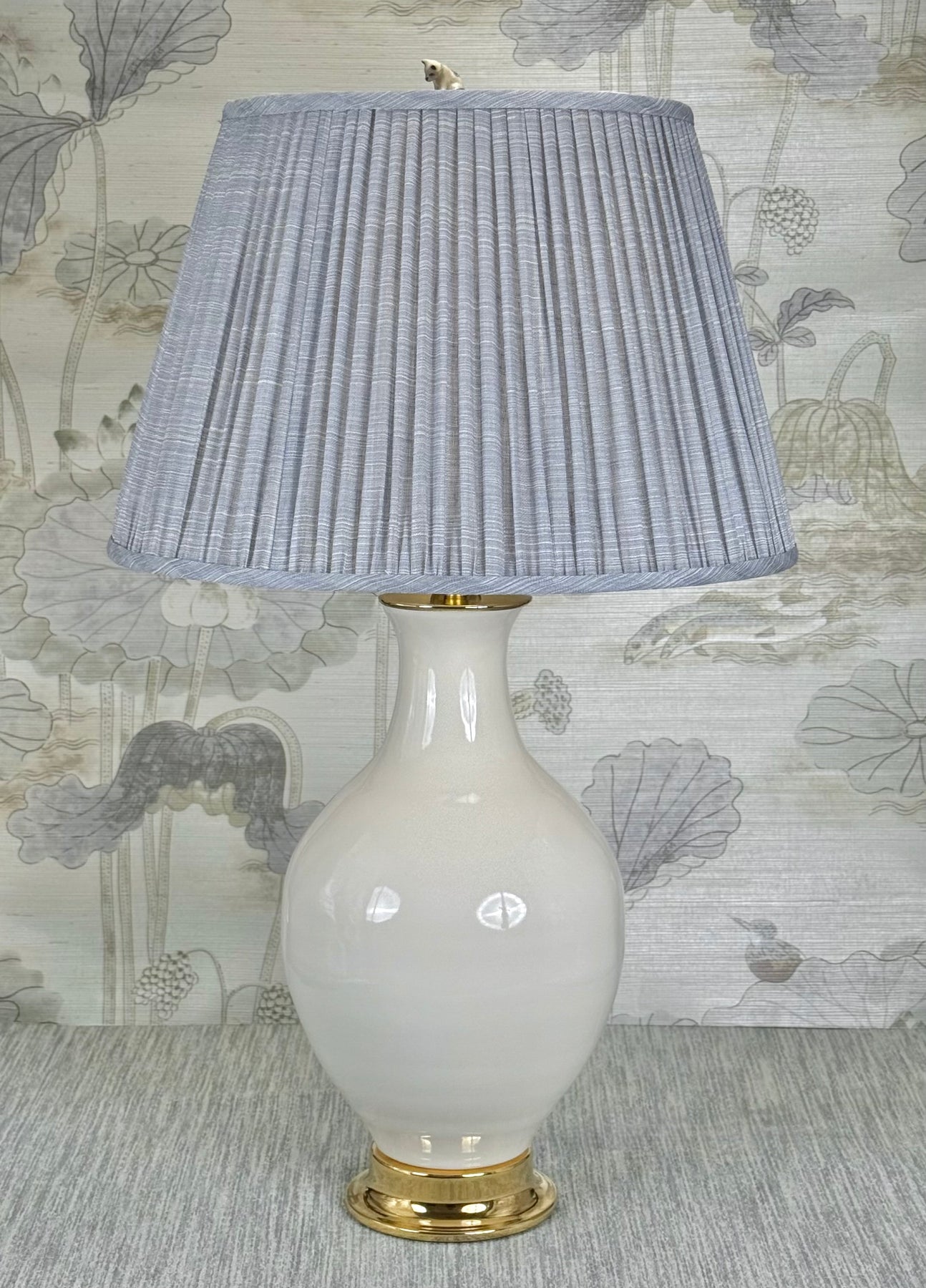 Hand-painted white porcelain kitten with cobalt accents on a solid brass swivel base; curious and charming.