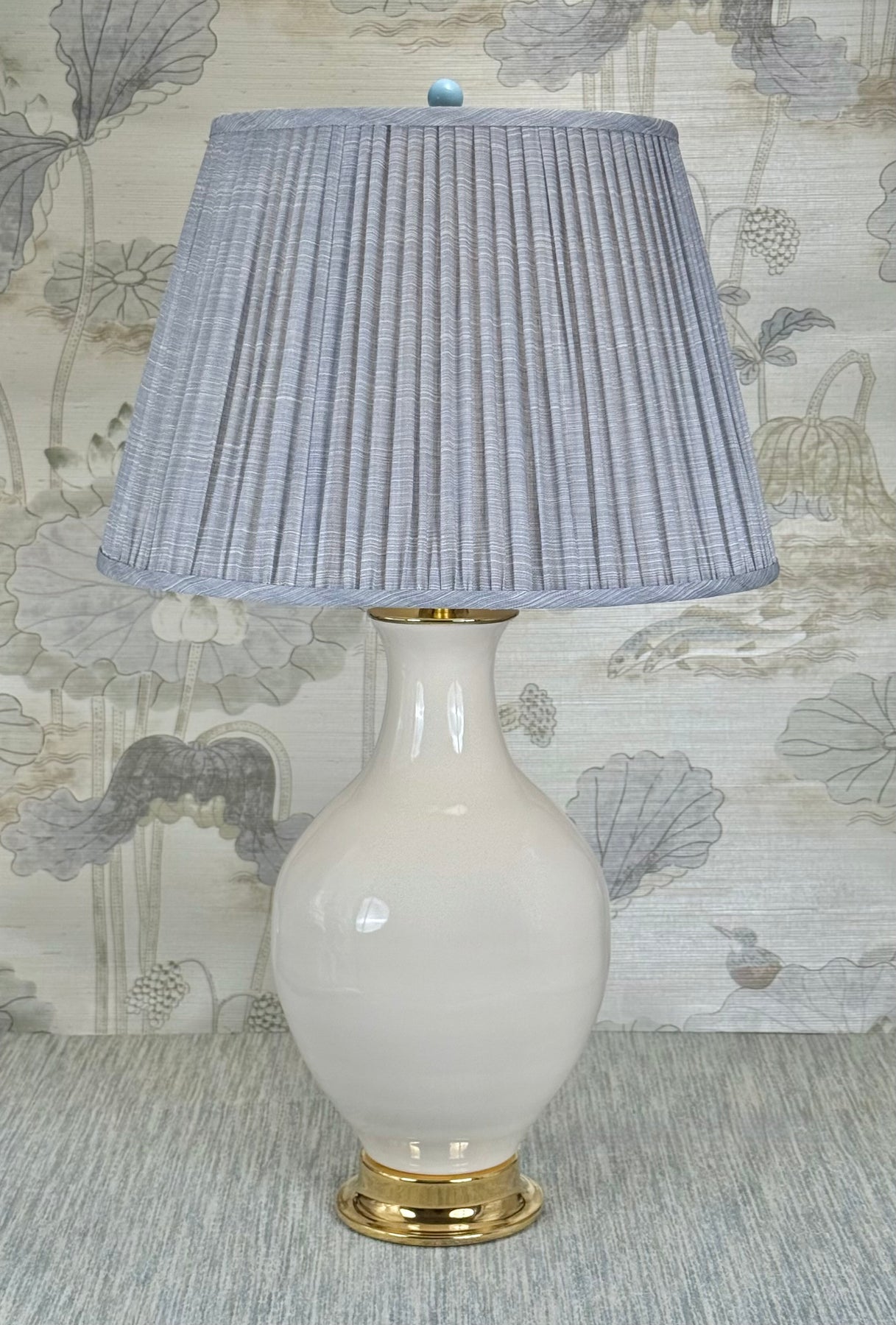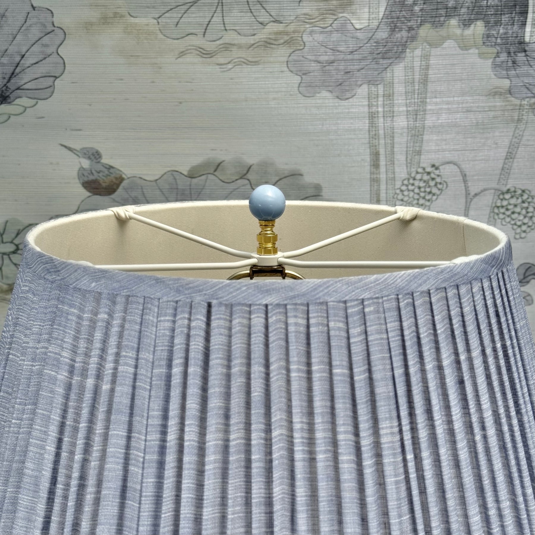 This sky blue ceramic finial offers a simple, polished accent that brightens any lamp with its soft hue and clean form, resting on a solid brass base for a timeless finish.