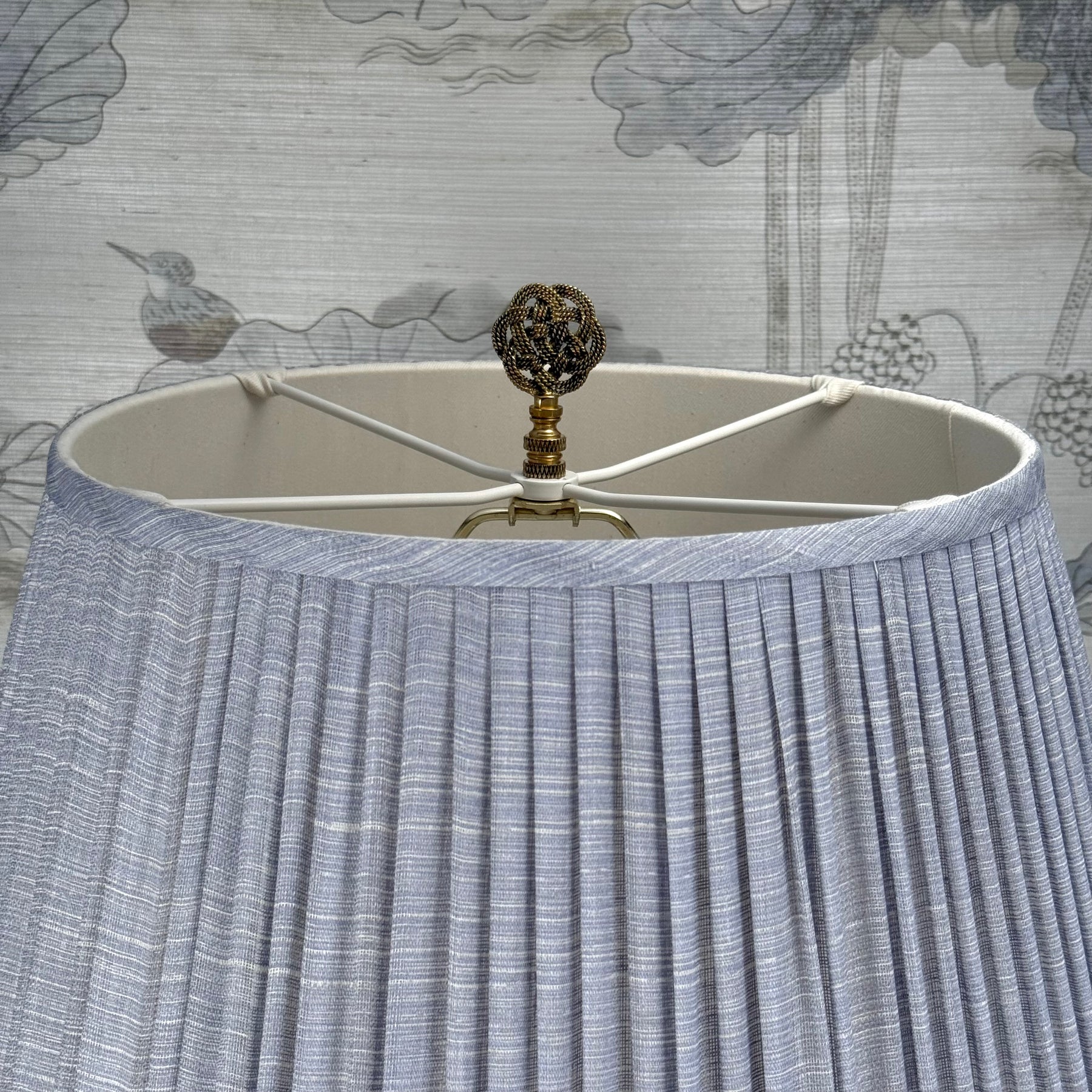 A light antique brass finial featuring a woven knot design that adds character and refined craftsmanship to any lamp.