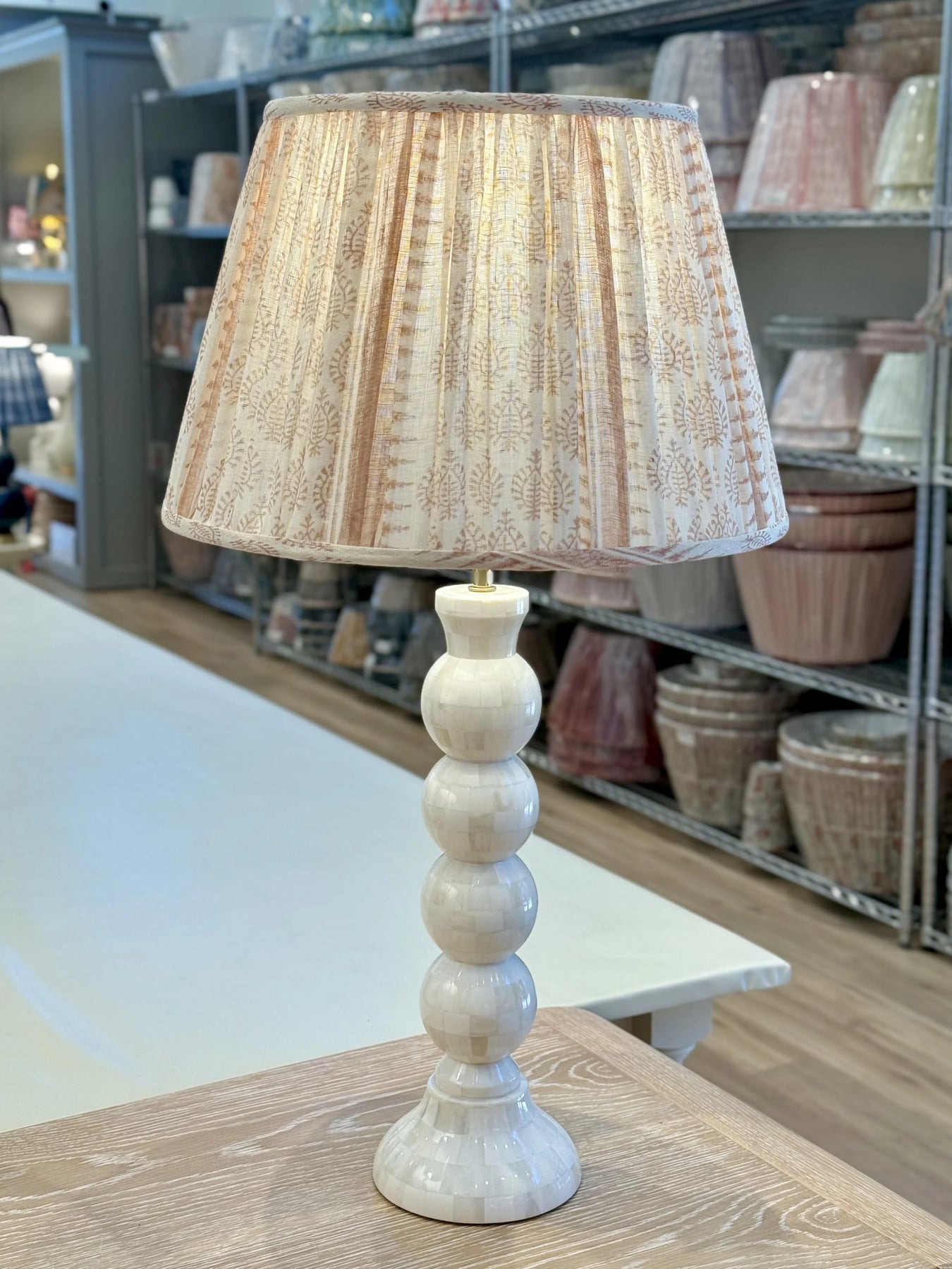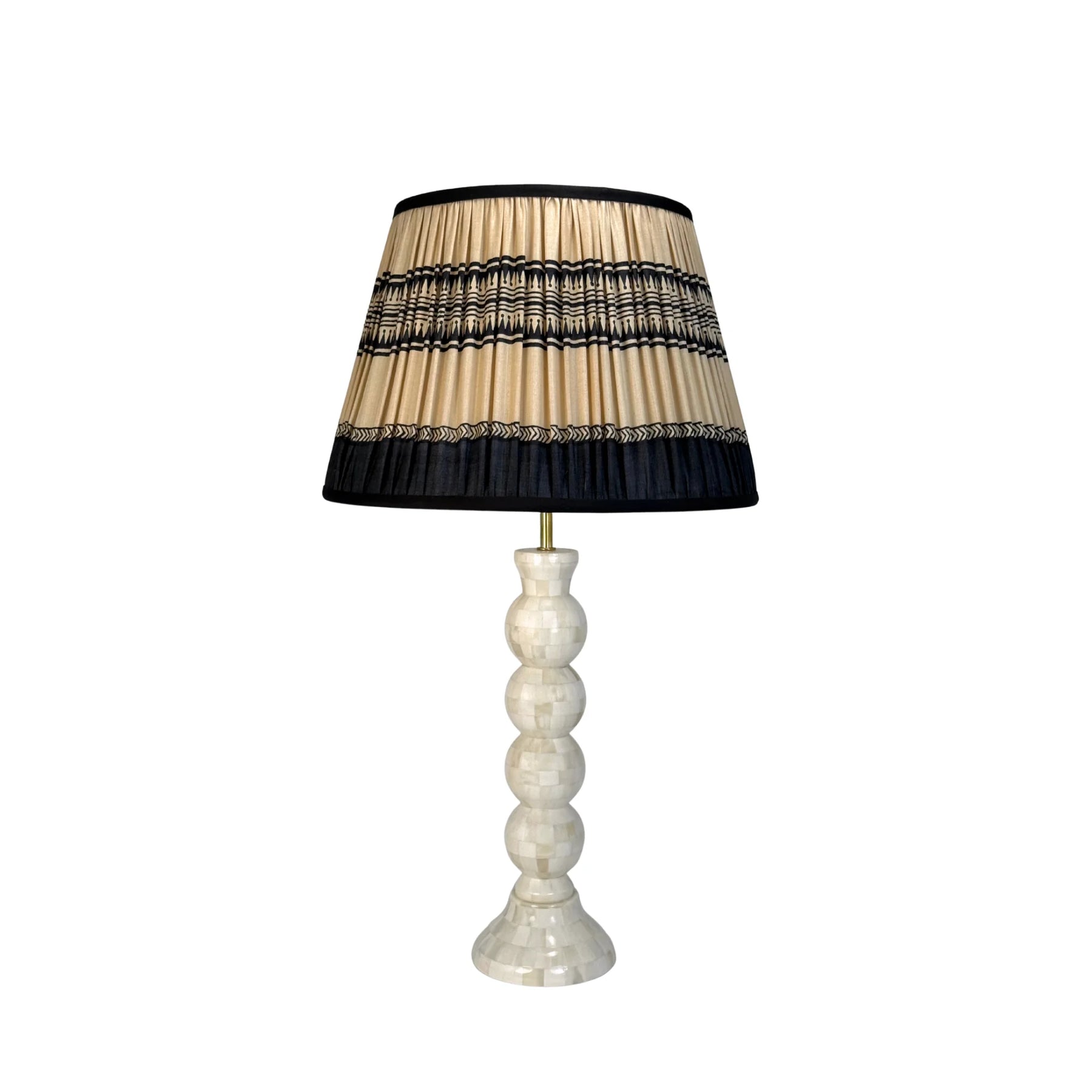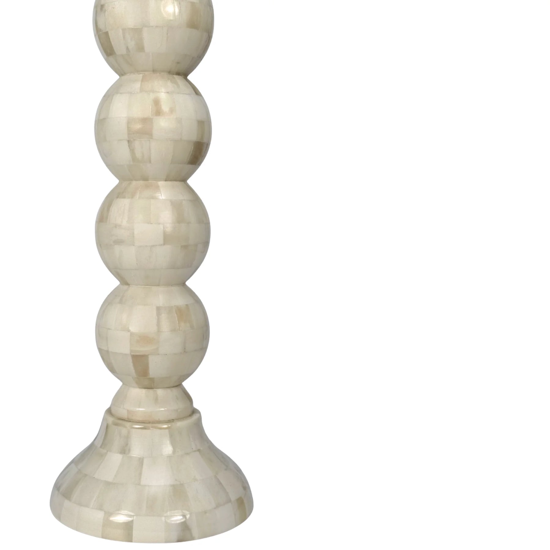 The Charminar bone table lamp features a sculptural stacked-orb silhouette that brings shape and interest to any space. Its rounded tiers and gently flared base create a distinctive, balanced profile, perfect for pairing with any of our lampshades. Each lamp is hand-carved from ethically sourced bone in India making every piece unique and full of natural character.