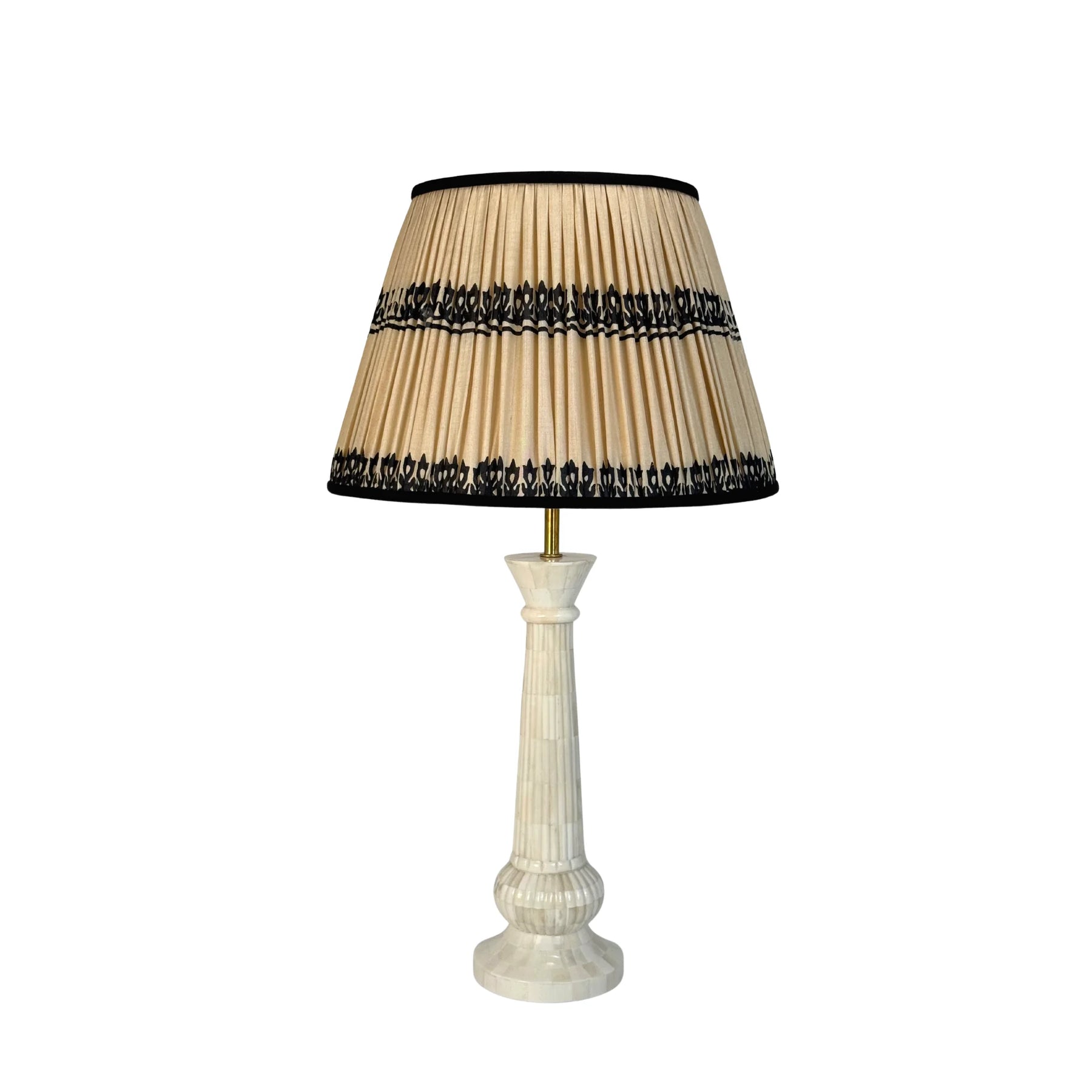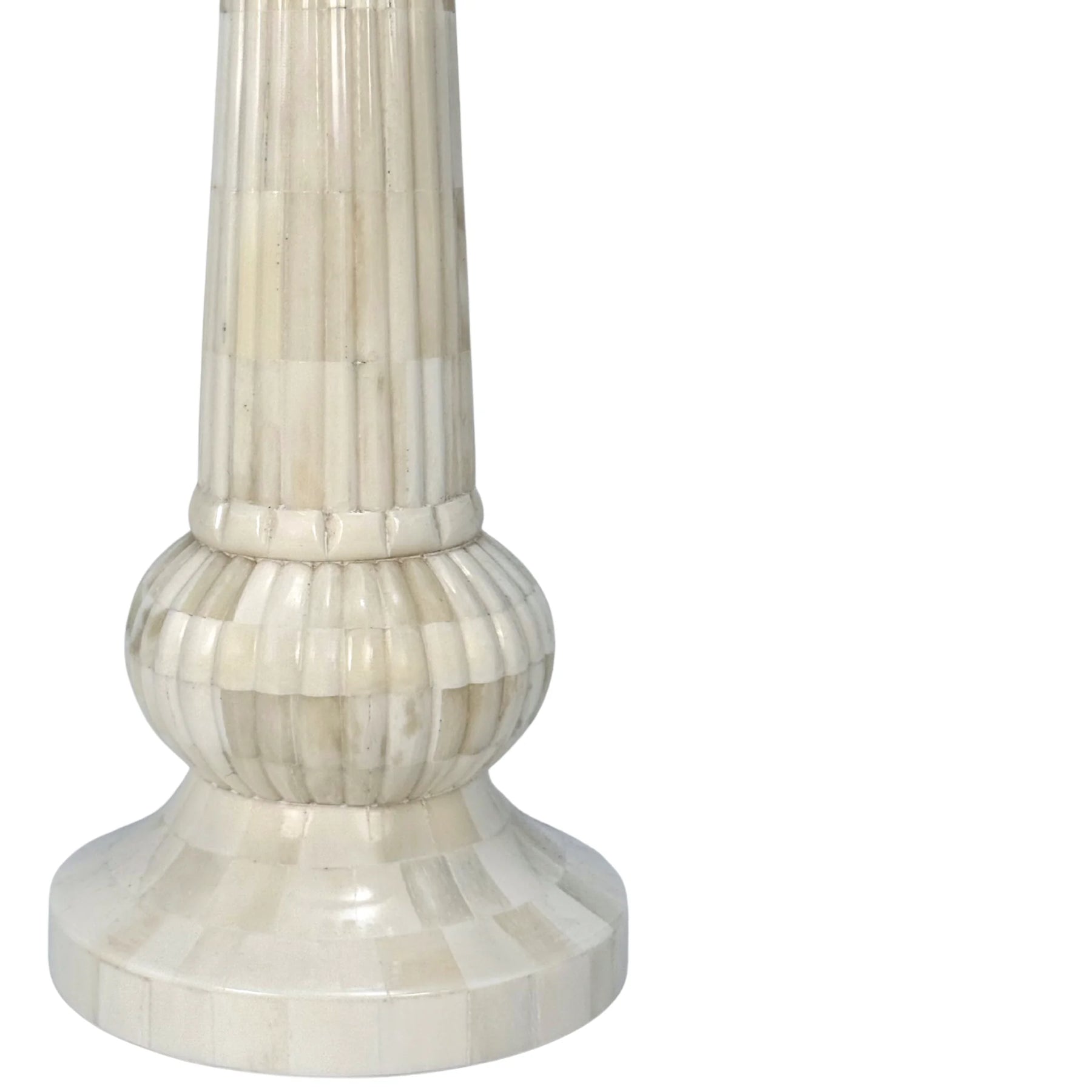 The Udaipur bone table lamp features a tall, slender silhouette that brings texture and warmth to any space. Its stepped base and gently tapered column create a balanced, elegant form, perfect for pairing with any of our lampshades. Each lamp is hand-carved from ethically sourced bone in India making every piece unique and full of natural character.