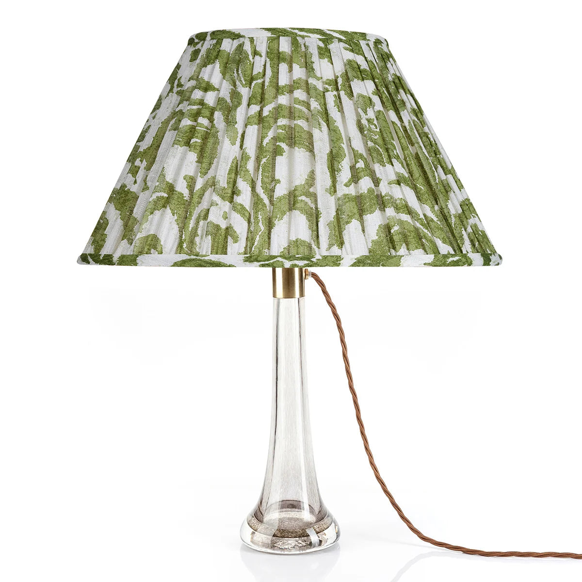 Handcrafted in England, each Marlborough lampshade is printed with Fermoie’s elegant damask-inspired pattern, drawn from a study of early textiles and evocative of the gentle beauty of the English rose. Like every Fermoie design, the entire repeat is drawn by hand, with the original broken lines of pencil on paper still evident in the finished pattern. This shade has an empire silhouette and is constructed from premium 100% linen, with a cream cotton lining matching the frame color.