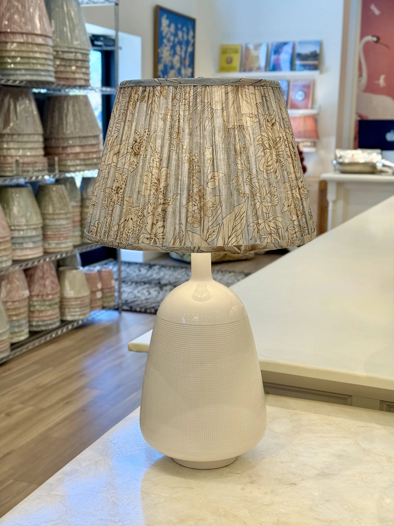 Ornella Medium Table Lamp in White Paired with Thibaut - Rosalind in Spa Blue Fabric Lampshade