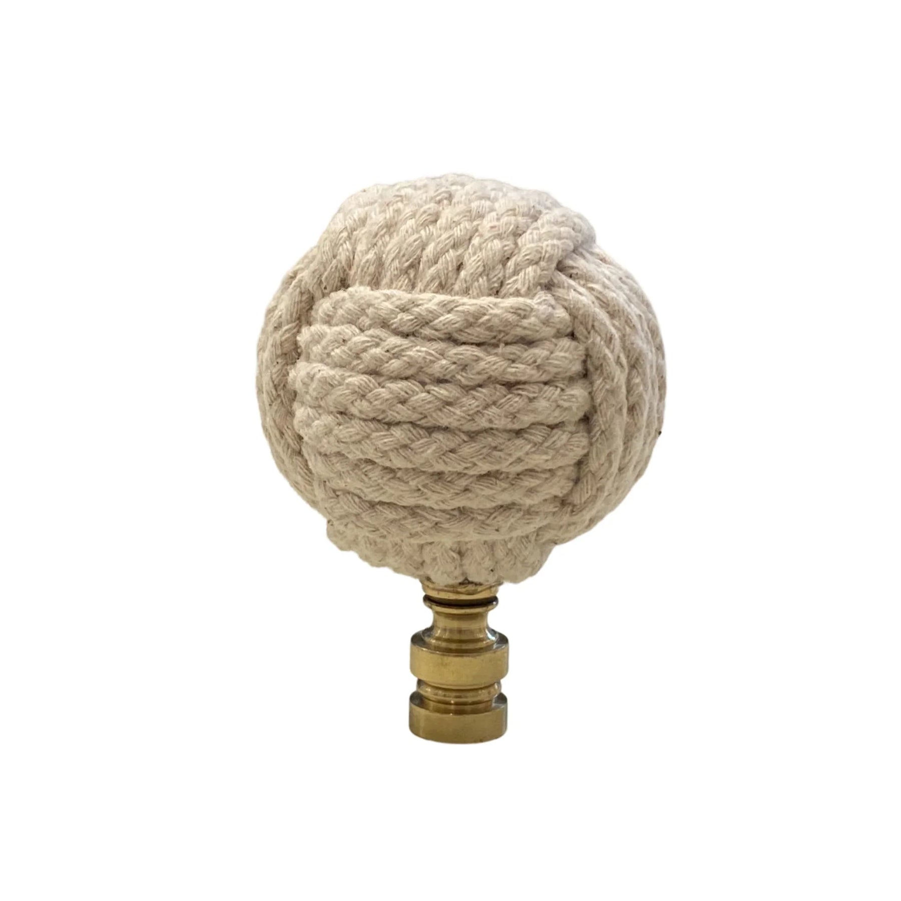 Hand-woven rope knot on a polished brass base; an elegant, tailored texture for linen or natural shades.
