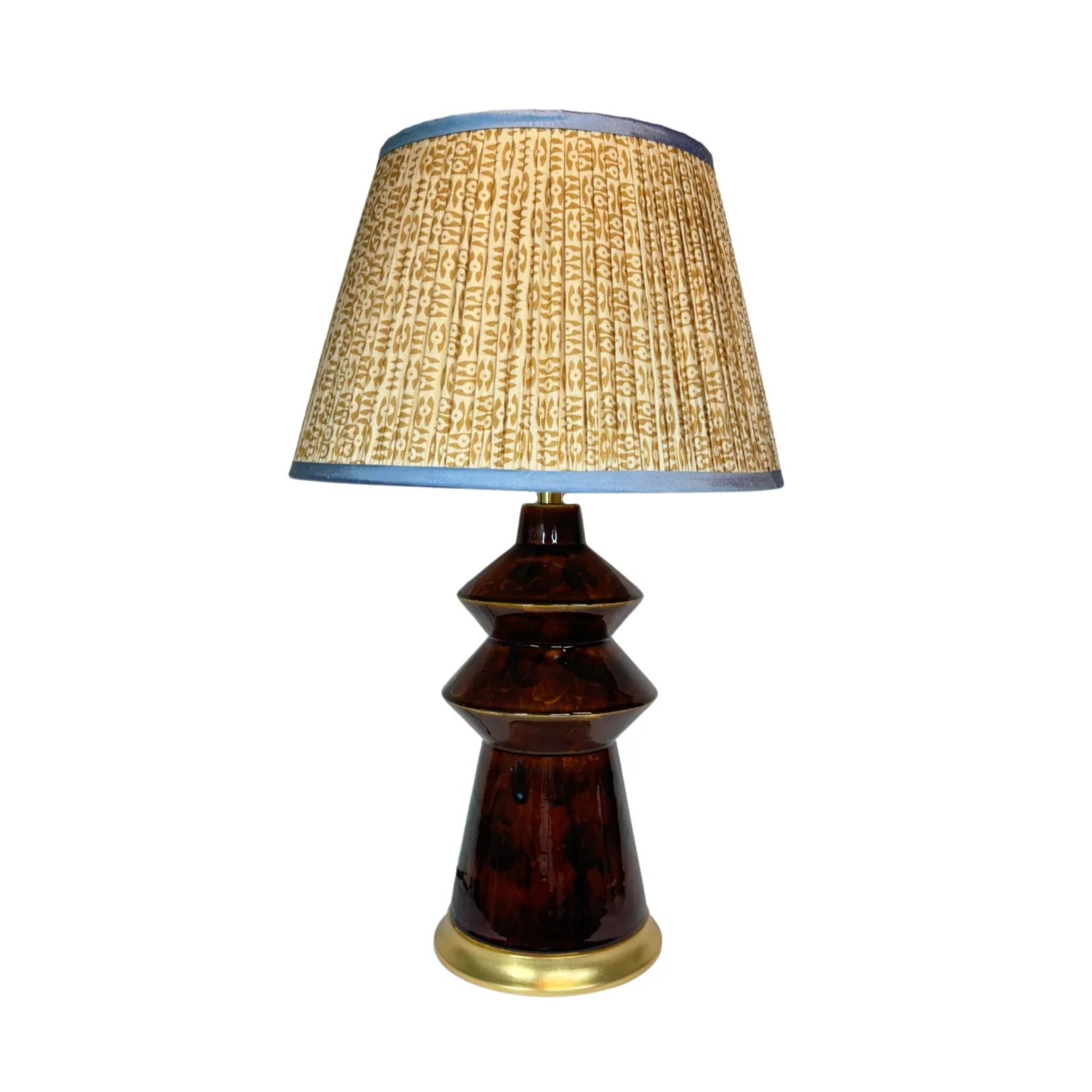 The Malibu table lamp by Hwang Bishop features a bold, angular silhouette with a rich tortoise glaze, adding depth and character to any space. This warm, dimensional glaze features subtle variations that enhance the handcrafted nature of the piece.