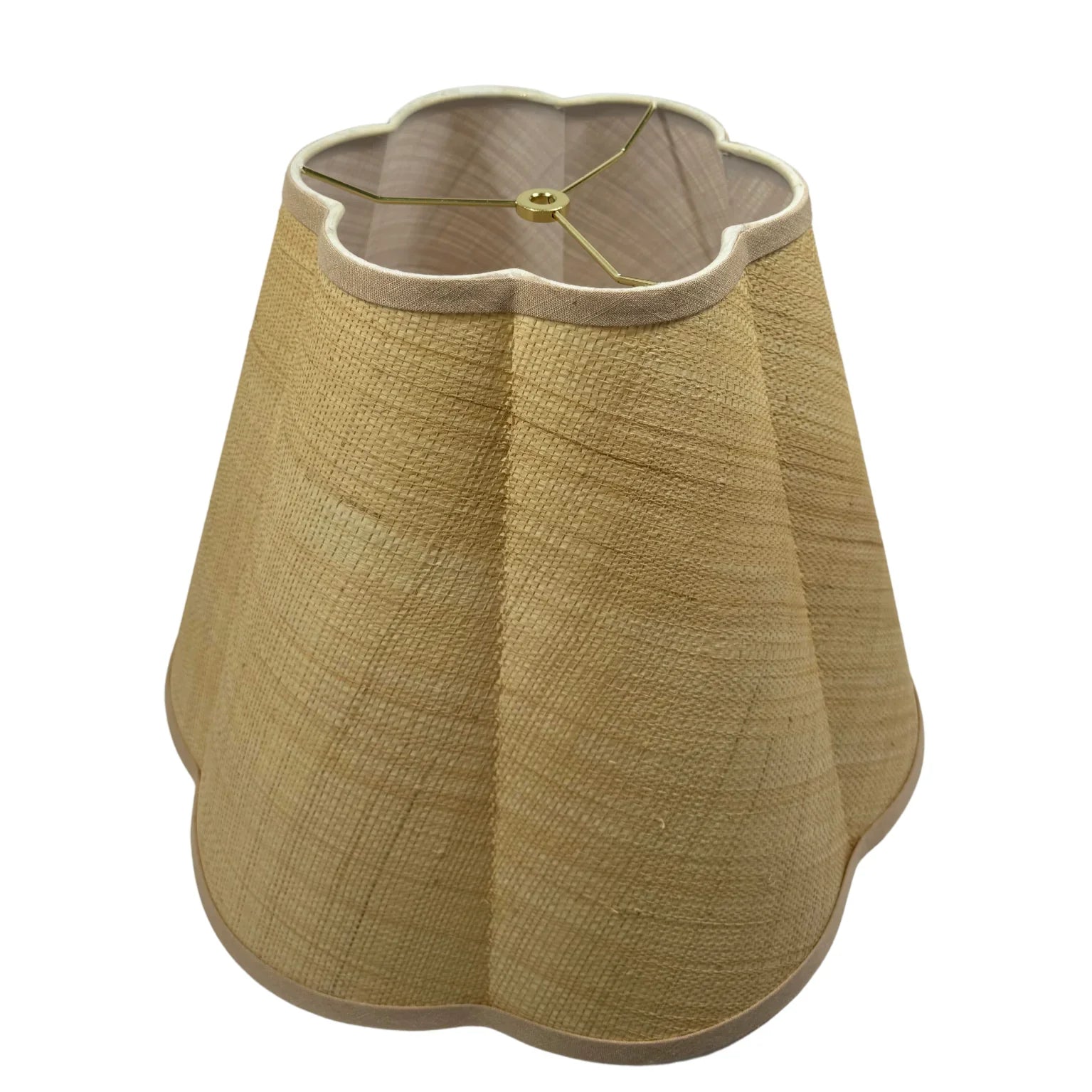 The Out Scallop Raffia lampshade features natural raffia with a gently scalloped edge, accented by soft linen trim for subtle elegance. Designed for both charm and function, its textured finish brings warmth and character to any room, making it a versatile addition to modern and classic interiors alike.