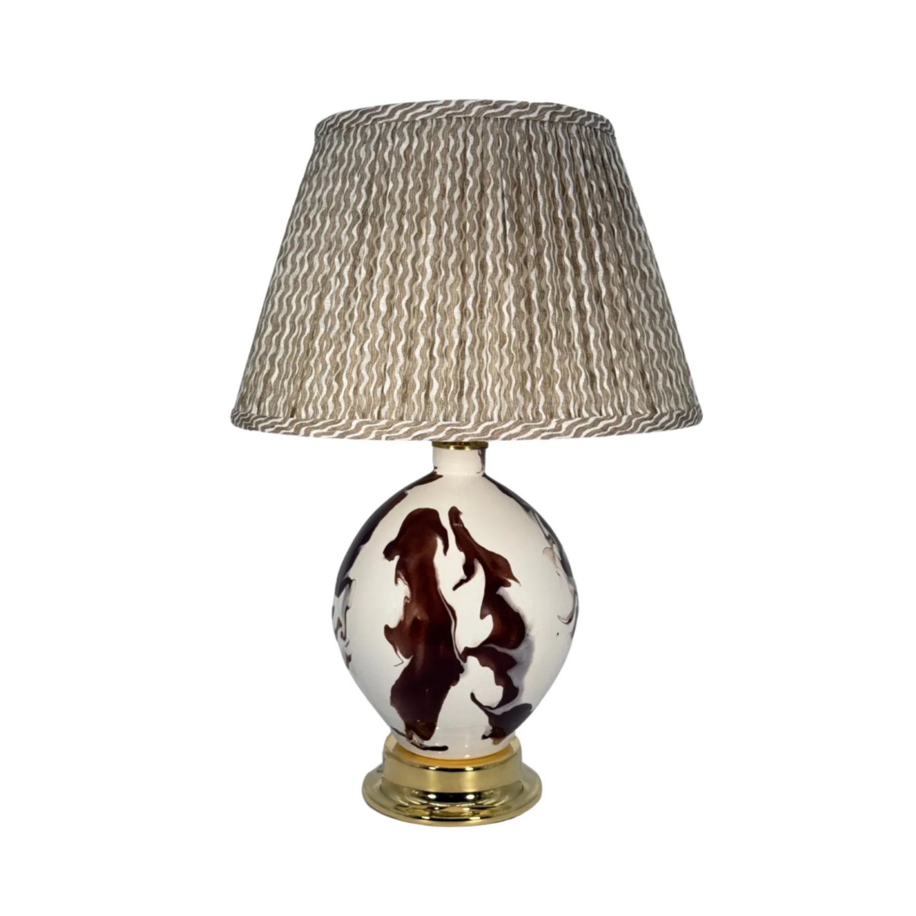 The Paul Schneider Maypearl lamp in brown and white geode glaze is a mini version of his best selling Beeville Lamp. It makes for a great little statement piece or a bold tuck away. Each handcrafted piece offers subtle variations in glaze pooling and texture, making every lamp truly one of a kind.